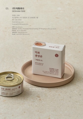 green onion flakes, while Deokhwa Canned Pollock Roe (Spicy) adds spiciness with chili-flavored oil, sunflower oil,