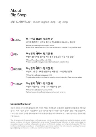 Korean phrase "부산이라 좋다" highlighting the city's uniqueness and originality, involvement of design experts, we established an operational system that enhances the quality of product